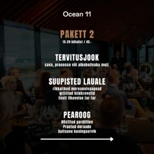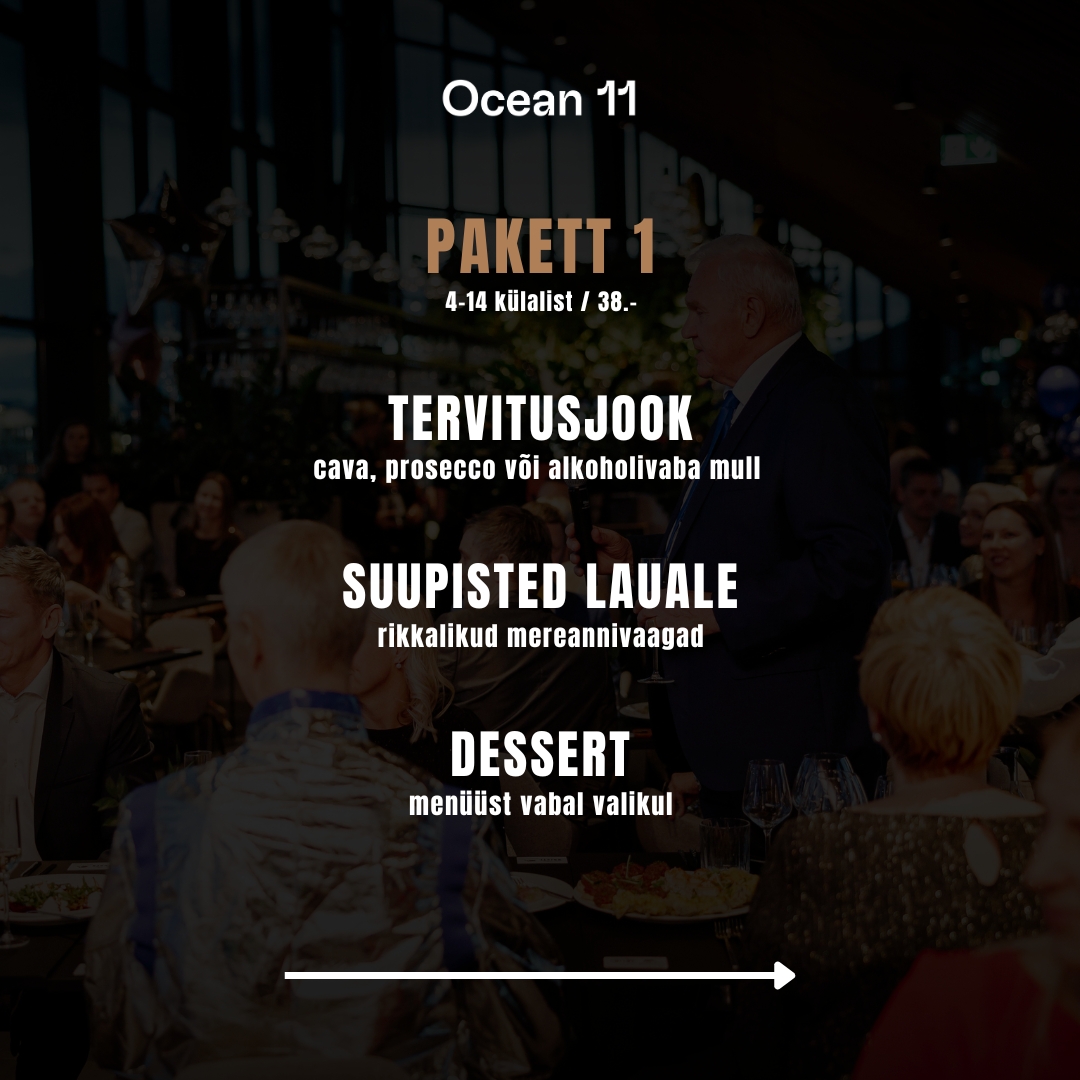 Tähista oma sünnipäeva stiilselt Ocean 11 sünnipäevapakettidega, kus iga detail on hoolikalt läbi mõeldud, et muuta su pidu unustamatuks! Ja mis oleks parem kui alustada õhtusööki klaasi mulliga – täpselt nii, meie tervitame iga sinu külalist tasuta pokaali mulliga, et luua ideaalne atmosfäär kohe algusest peale.