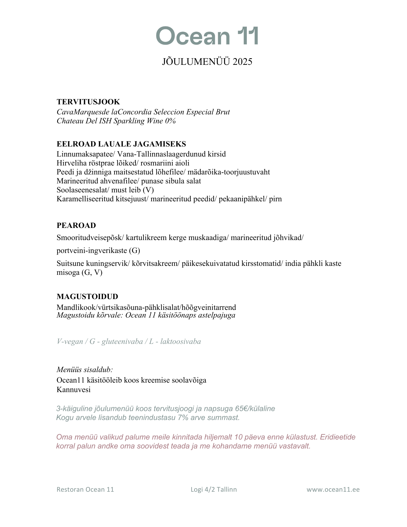 Tule korralda oma jõulupidu mereäärses Ocean 11 restoranis ja naudi pidulikku meeleolu koos maitsva jõulumenüüga.